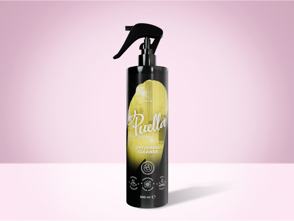 Puella Universal Spray Cleaner with JaLu fragrance and a balanced pH. Gently and effectively cleans all surfaces, removing dust, smudges and fingerprints, while leaving your home filled with your favourite scent.