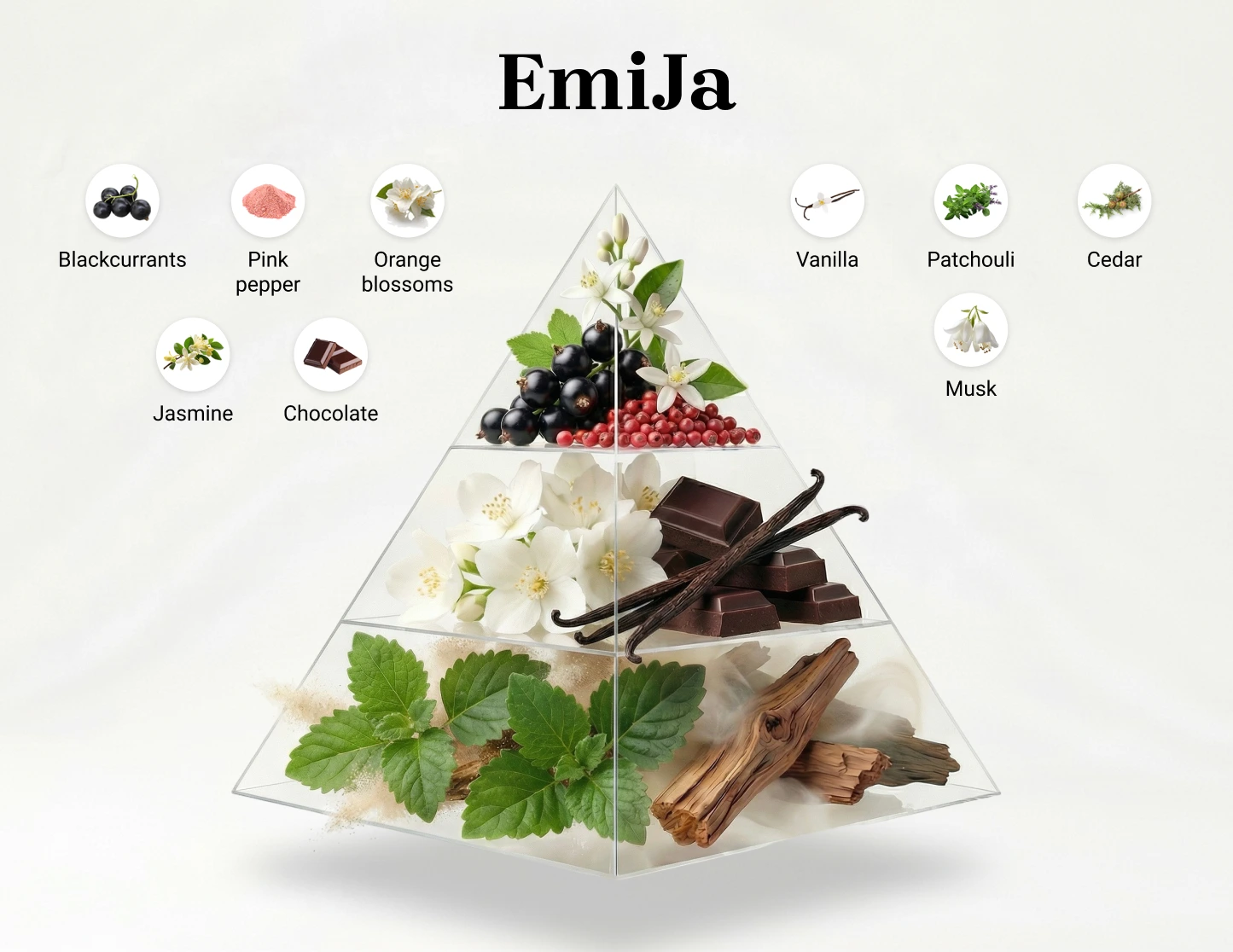Experience the unique EmiJa fragrance, where the tones of blackcurrants, enchanting orange blossoms, delicate pink pepper, captivating jasmine, tempting chocolate, and warming vanilla come together in harmony. This composition will unlock the doors to a world of magnetizing scents with every wash.
